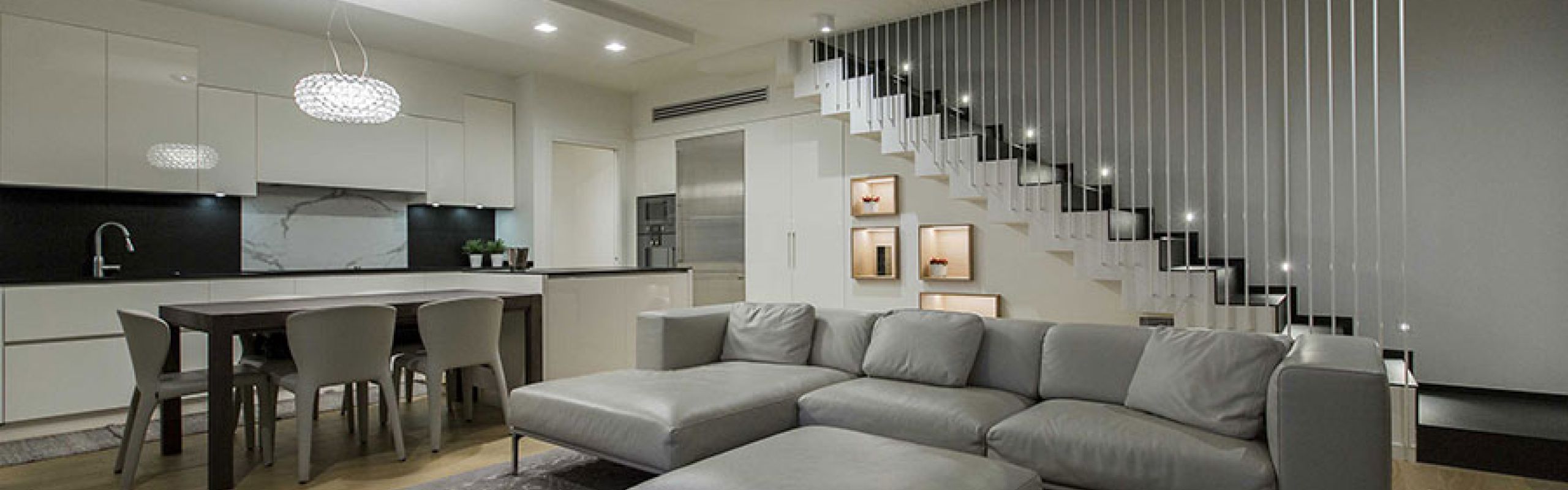 Grande open space la zona giorno di questa abitazione con arredamento molto minimo per esaltarne le dimensioni. Cura maniacale per ogni dettaglio a disegno.