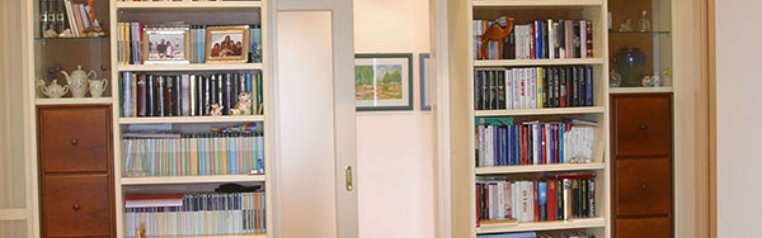 Un must nei miei progetti: la libreria in questo caso interpretata con una perfetta simmetria e come fondo ideare ad una volta ad arco.