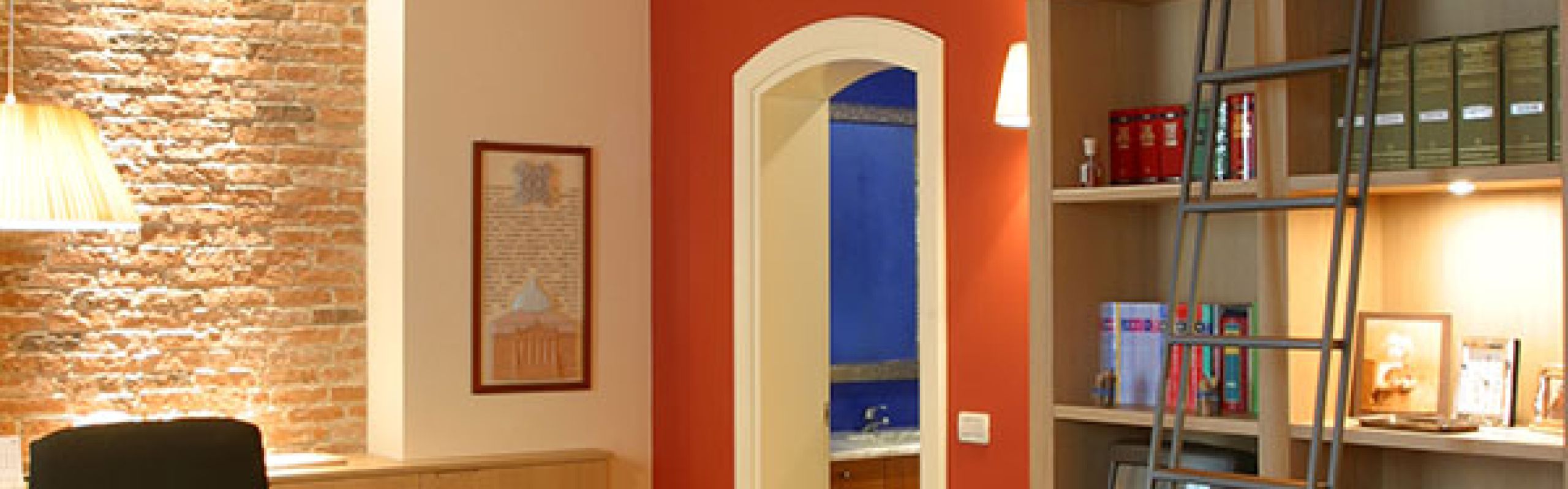 Ufficio Commercialista La rigorosità degli arredi di questo ufficio è smorzata dalle decise tonalità di colori caldi. Indietro Avanti